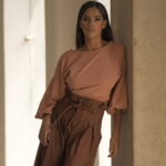 BLUSA CROP, MANGA 3/4 CON AMARRE EMBOLBENTE EN ESPALDA