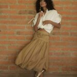 Una silueta suave, envolvente y con movimiento natural. Esta falda globular en tono arena destaca por su diseño romántico y estructurado a la vez. La pretina ancha acentúa la cintura, mientras que el volumen recogido en la parte inferior crea una forma orgánica y femenina que evoca libertad y fluidez. Confeccionada en algodón liviano, es perfecta para transitar con elegancia entre lo cotidiano y lo especial. Llévala con tops ajustados o blusas vaporosas para un look etéreo y sofisticado.