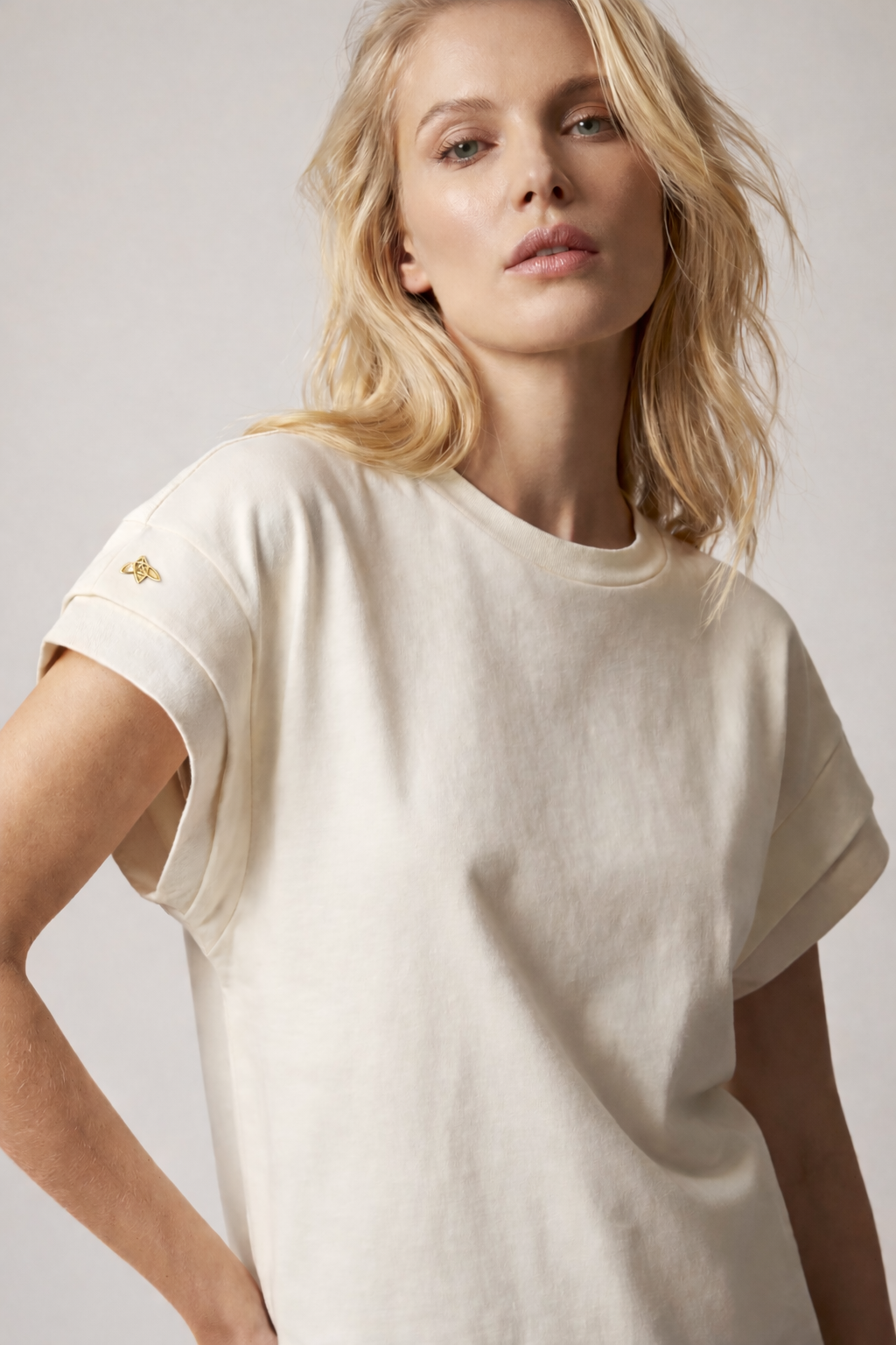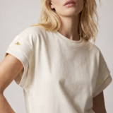Confeccionada en algodón suave de alta calidad, su silueta ligeramente amplia y mangas dobladas crean una caída natural que favorece el movimiento del cuerpo. El delicado bordado de la abeja —símbolo de identidad de la marca— aporta un detalle sutil y distintivo que refleja la esencia artesanal de la colección.