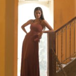 Vestido Largo Lazo Terracota – Elegancia Natural y Movimiento Libre